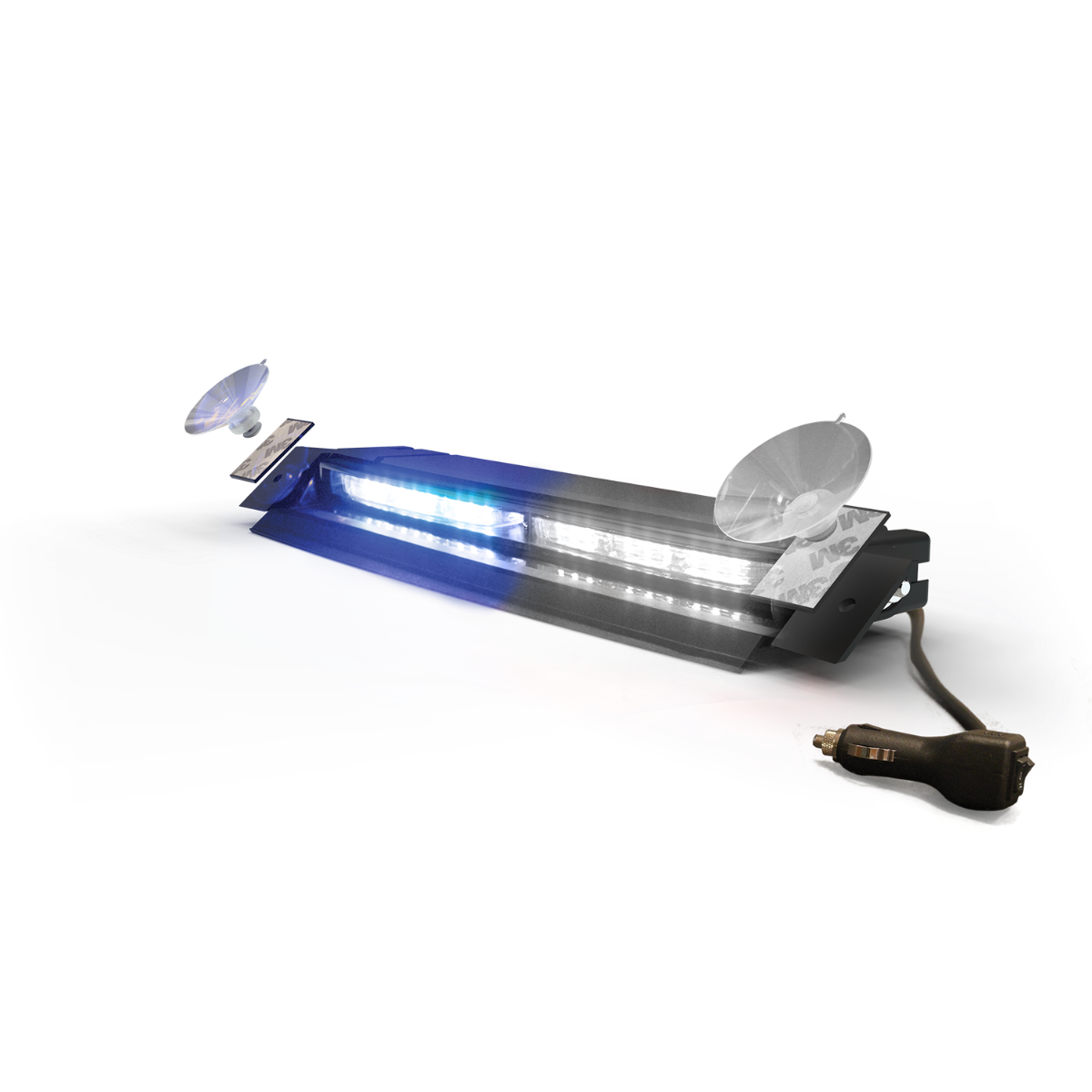 Code 3’s low-profile, Matrix® compatible CD5051VDL2 deck, dash and visor light delivers discreet warning wherever an interior light is needed in a patrol unit, undercover unit or any other vehicle in the fleet. Permanently or temporarily mount the emergency warning light with included brackets using suction cups, tape or screws. The dual-color LED light heads are available in combinations of white and amber, red or blue colors, which are capable of producing 67 flash patterns including steady-burn. The cigarette plug adapter also includes a simple two-button controller. The removable shroud prevents unwanted flash back from the windshield.