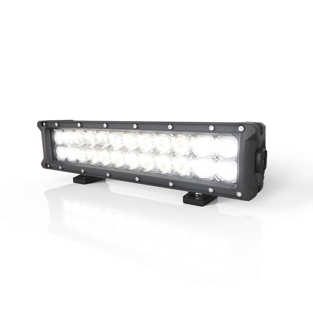 Code 3’s double row utility bars offer bright white light output with low amp draw and a relatively low profile. They are available in three lengths with multiple mounting options. These bars are an ideal choice for a variety of applications. Features include 12-24 VDC operation, deutsch connector, powerful five-watt LEDs, flood or combination flood/spot beam patterns, durable aluminum housing and a tough polycarbonate lens.