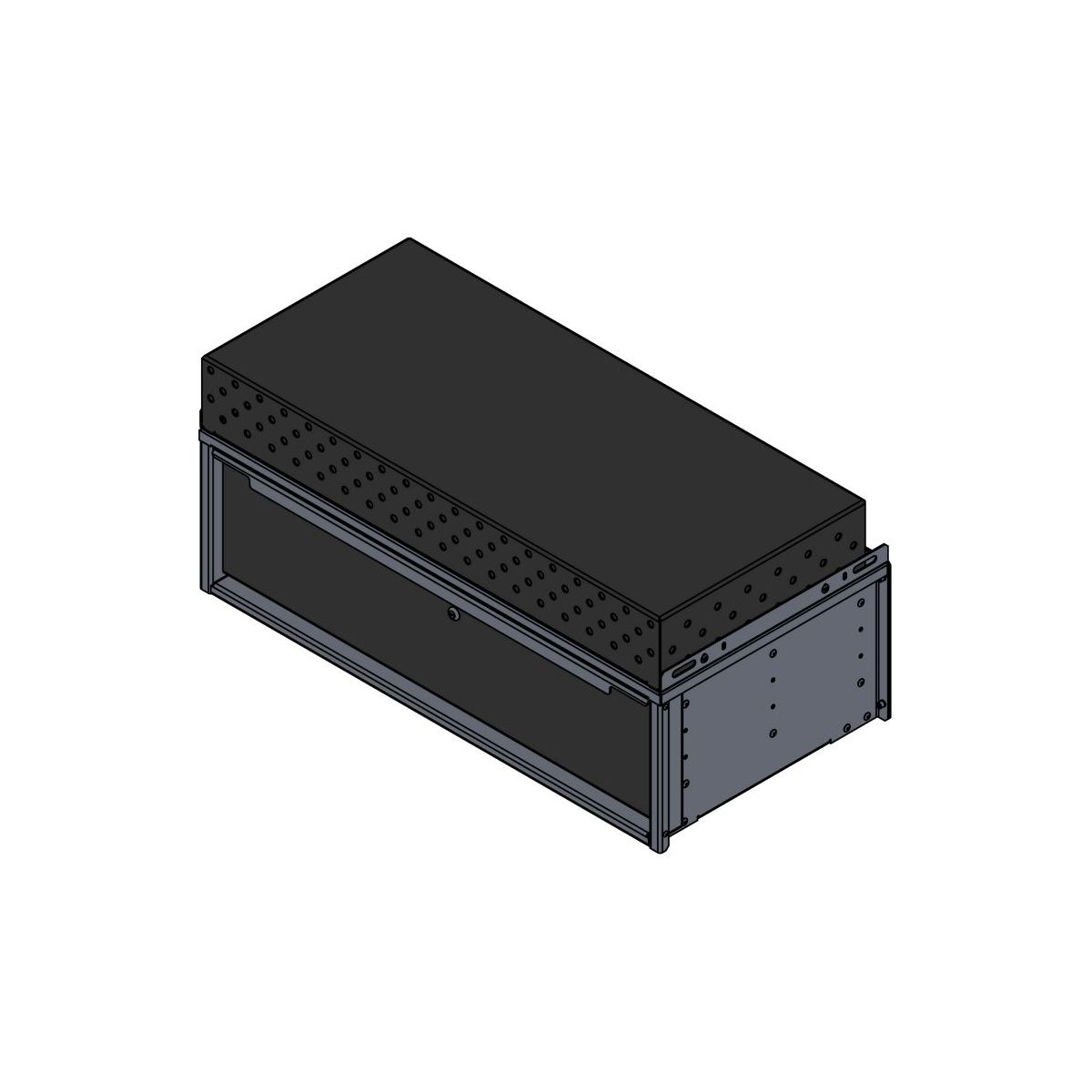 The Single Drawer with Radio Cover is a cost-effective way of securing and protecting your radio equipment. Just mount your radio equipment on top of the single drawer and install the radio cover on top. The perforations in the front and sides allows for air movement so that your electronics don’t overheat.