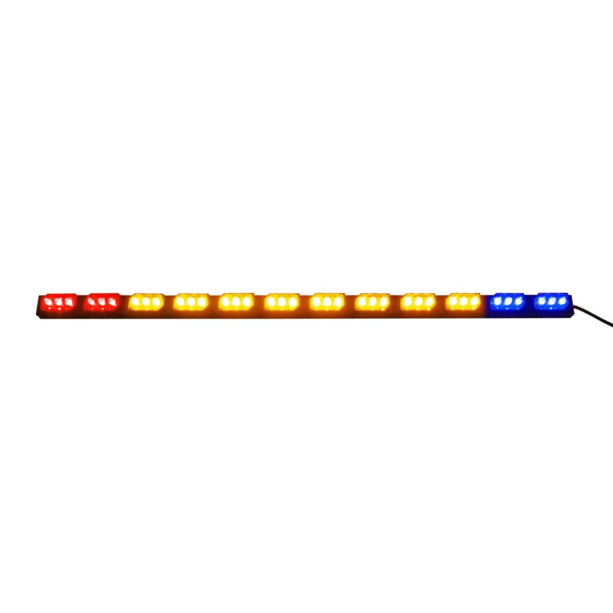 This 12 module 38.75" lightbar is available in single-color. split color, or amber with single/ dual warning ends. Each module contains three Gen3 LEDs. The unit includes many flash patterns including LiteRyder and "sweeping." It is backed by a Soundoff Signal five year warranty.