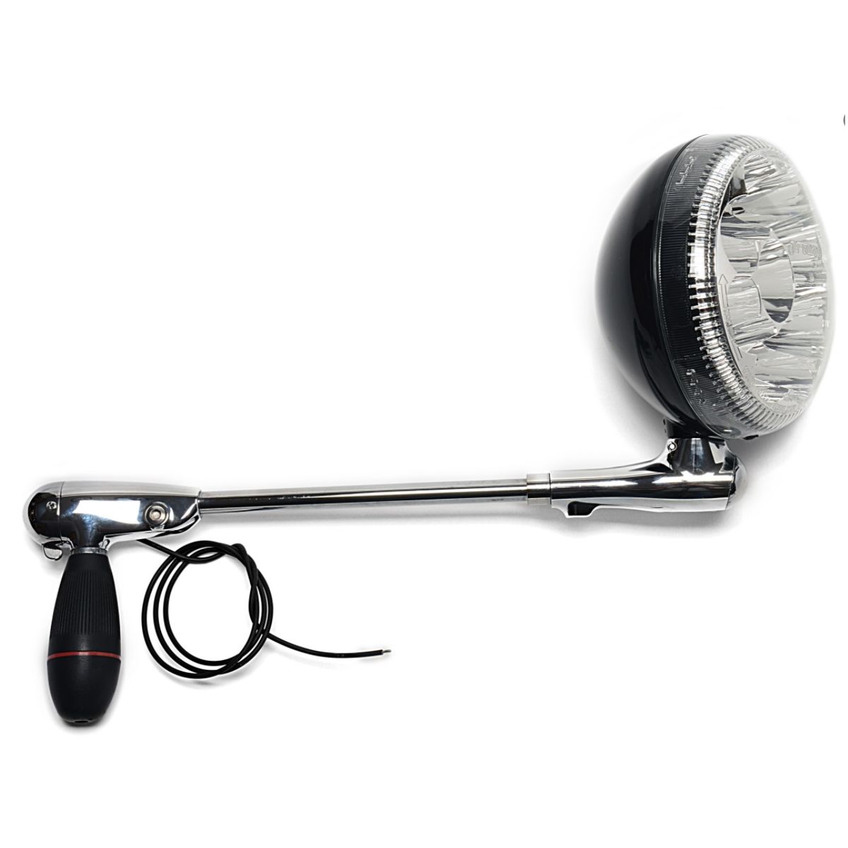 A spotlight that offers instant aimable light. The unit's interior control handle and fingertip switch provide 360- degree horizontal rotation with 120 degree veritcal adjustment. The head assembly is high impact PC/ABS. Each LED has it's own individually focused reflector for a precise beam pattern that's 9-degrees veritcal by 9-degrees horizontal.