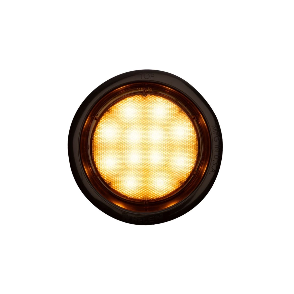 Round 2G Series lighthead with Super-LED output, delivering durable, versatile lighting for commercial vehicles, including tow trucks, snowplows, and utility fleets.