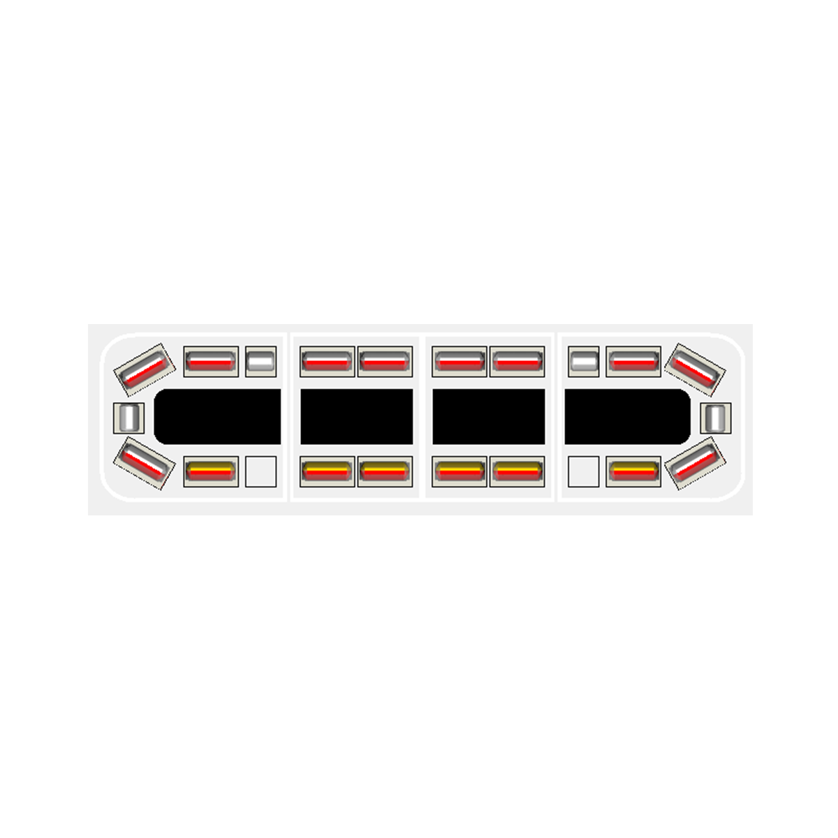 All Edge® 9X Lightbar lengths have a total of 48 available outputs for use within the bar. 40 dedicated Warning outputs and 8 Auxiliary outputs. •Each fullsize lighthead with DUO™ color options require 2 outputs •Each fullsize lighthead with Split/DUO Color options require 3 outputs •Short modules serve multiple purposes •Warning/Illumination utilizes 2 outputs •Illumination only (SOLO™) utilizes 1 output