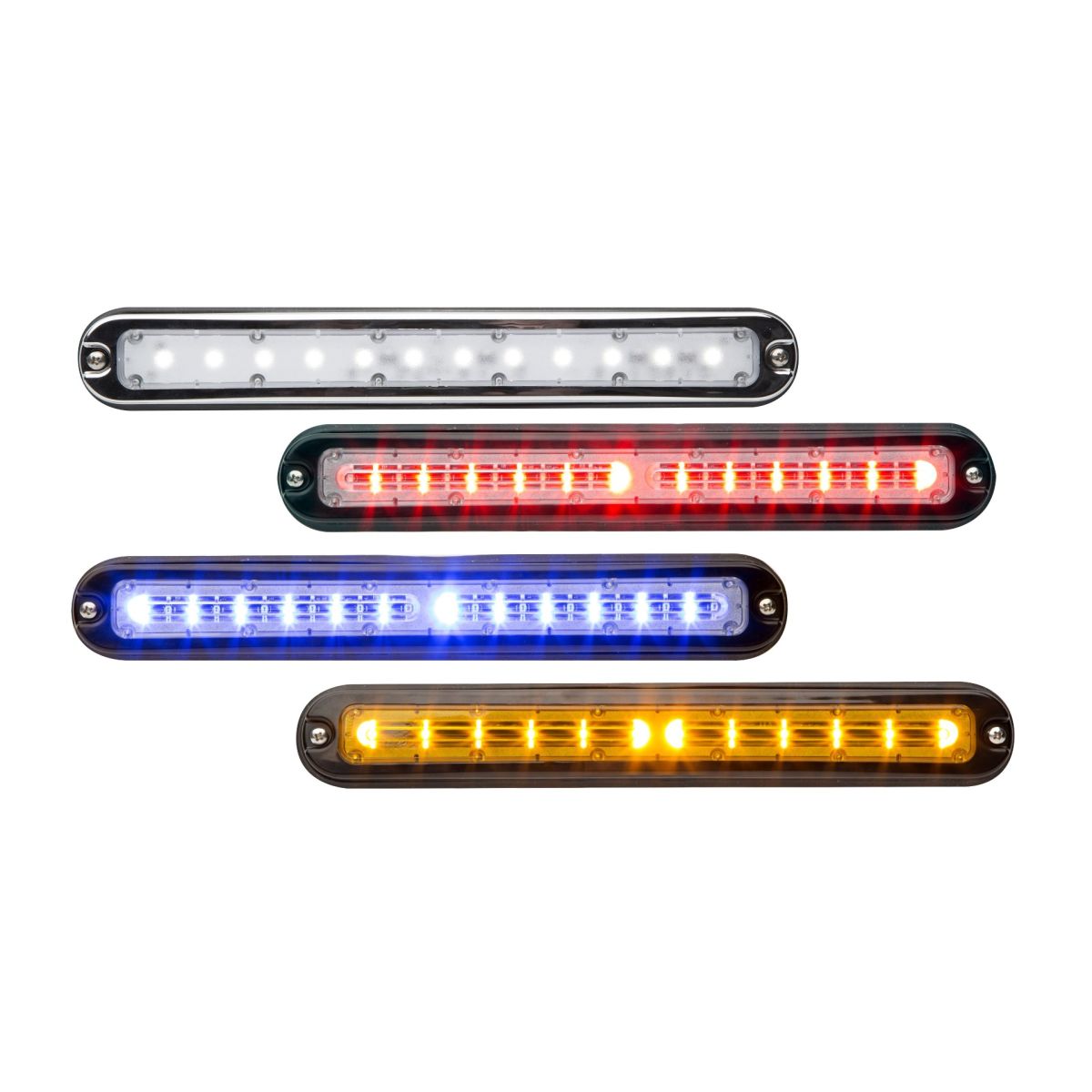 Just over 11.0” long and 0.5” deep, Mega T-Series™ lightheads are the largest of our popular T-Series lightheads. With TRIO™ technology, these lightheads offer independent control of three colors within a single unit, providing versatile lighting options for law enforcement, fire, EMS, and utility vehicles. Whether used for primary warning or additional scene lighting, the Mega-T Series is engineered to provide maximum visibility in any situation. Designed for a seamless, unobtrusive look, the Mega T-Series integrates effortlessly into various vehicle applications, including grilles and push bumpers. Its rugged construction ensures durability in demanding environments, making it an ideal choice for fleets that require reliable, long-lasting lighting solutions.